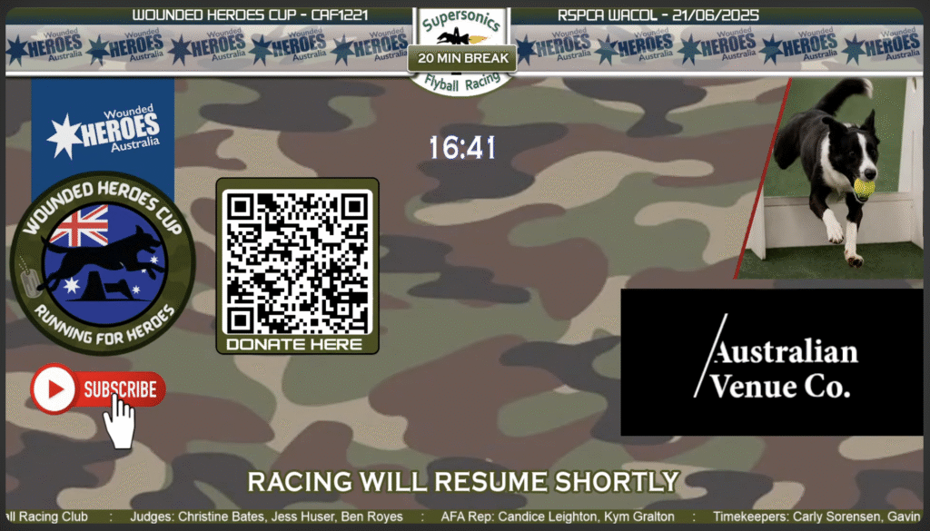 The Wounded Heroes Cup is a major flyball event that attracts families, dog lovers, and the wider community. We offer a range of sponsorship options to suit every level of support. Your brand will be seen both at the event and through our live streaming, reaching audiences near and far. Every sponsorship helps raise funds for Wounded Heroes, supporting veterans and their families.